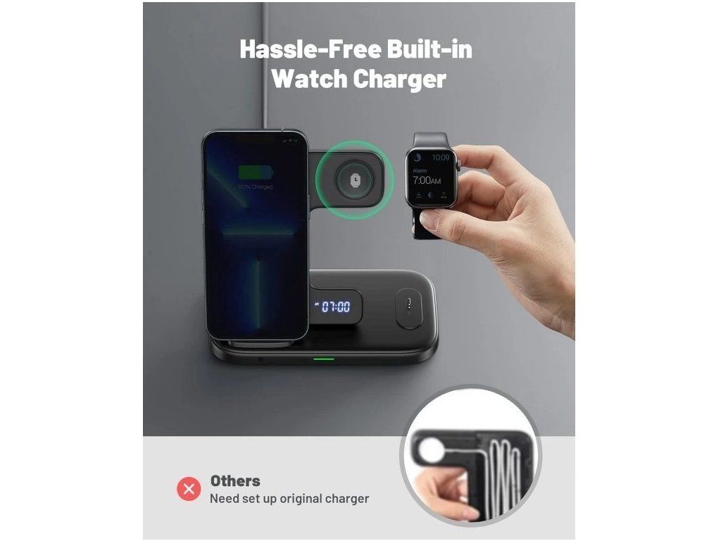 Vstavaná nabíjačka hodiniek - Nabite svoje iWatch počas okamihu pomocou vstavanej magnetickej nabíjačky hodiniek. Už žiadne zdržiavanie sa okolo navíjacieho kábla.