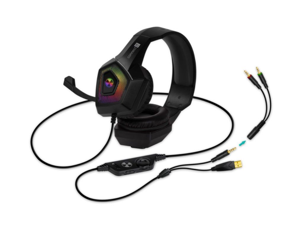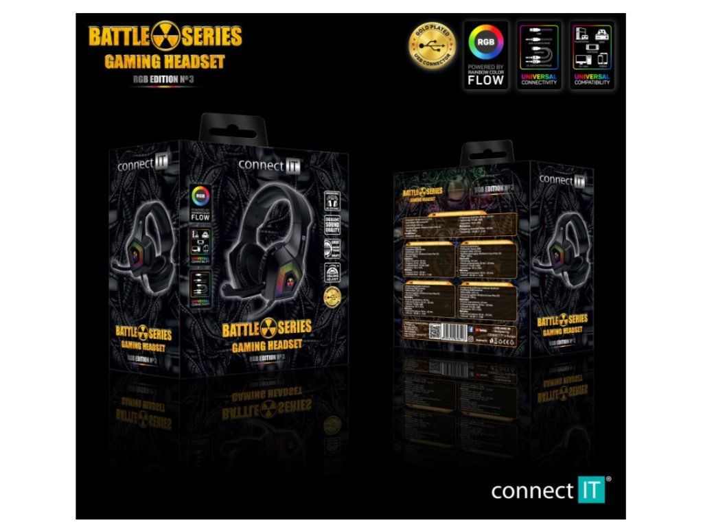 Connect IT Battle RGB Ed. 3 herné slúchadlá s mikrofónom, 2x Jack+USB – čierna