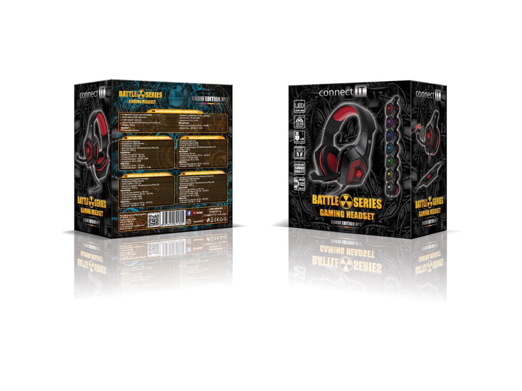Connect IT Battle RNBW Ed. 2 herné slúchadlá s mikrofónom, 2× Jack + USB – červená