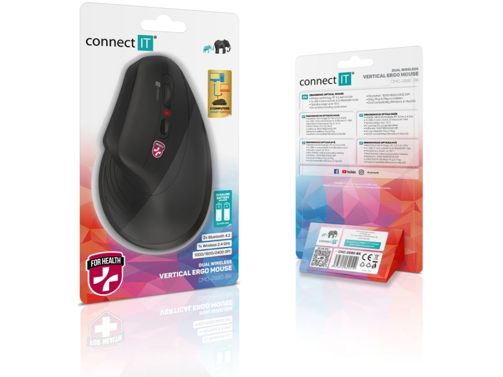 Connect IT For Health Verti TriMode ergonomická vertikálna bezdrôtová myš - čierna