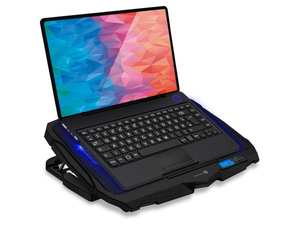 Connect IT FrostWind chladiaca podložka pod notebook s modrým podsvietením – čierna