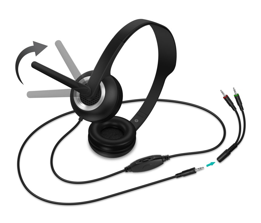Vysoko citlivý mikrofón je umiestnený na sklopnom ramene, ktoré je možné ľahko nastaviť podľa potreby alebo úplne odklopiť, keď mikrofón práve nepoužívate. Ovládanie hlasitosti je prakticky umiestnené priamo na kábli, takže máte reguláciu zvuku vždy okamžite po ruke.