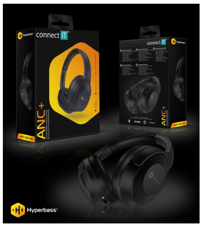 Connect IT Hyperbass ANC+ sú moderné bezdrôtové náhlavné slúchadlá navrhnuté pre maximálne sústredenie, pohodlie a dlhú výdrž. Vďaka technológii Active Noise Cancellation (ANC) sa môžete plne ponoriť do hudby, audiokníh alebo pracovných hovorov bez rušivých zvukov okolia.