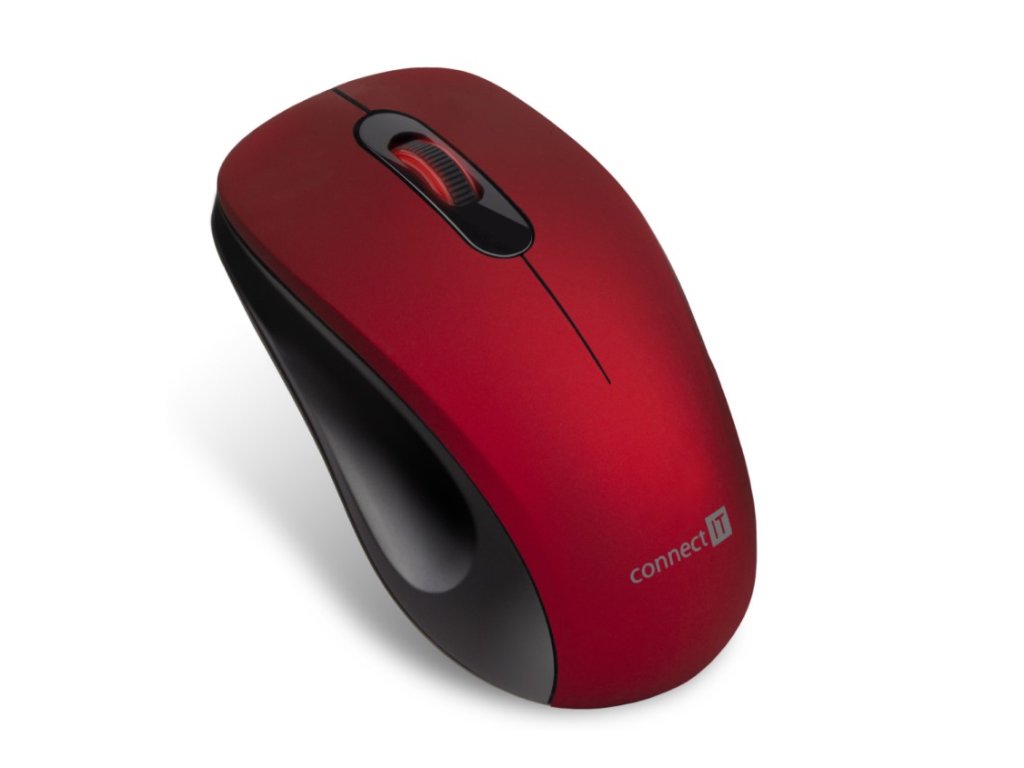 Connect IT MUTE bezdrôtová optická tichá myš, USB (+1x AA batéria) – červená