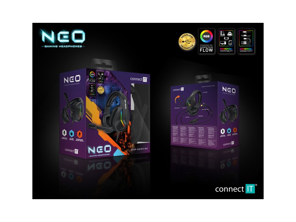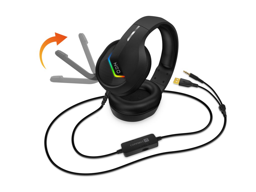 Connect IT NEO herné slúchadlá s mikrofónom, Jack + USB – čierna