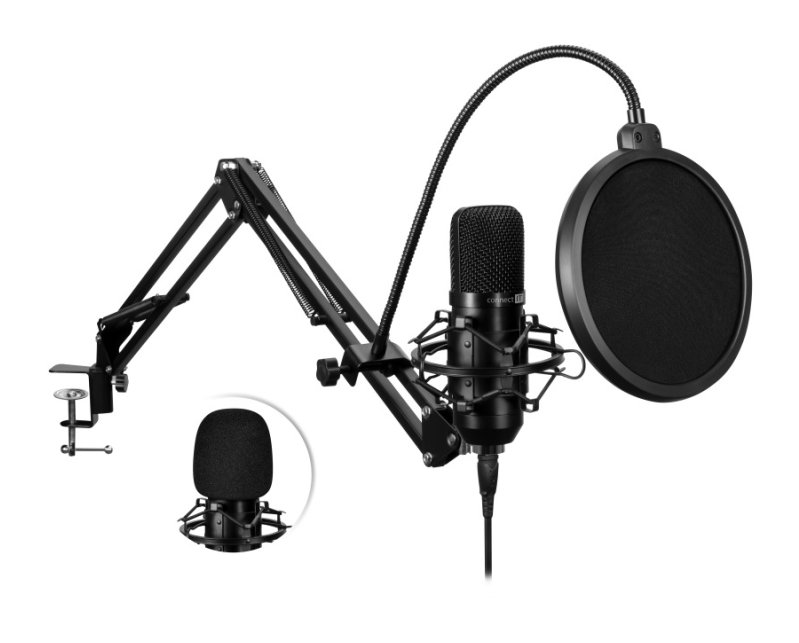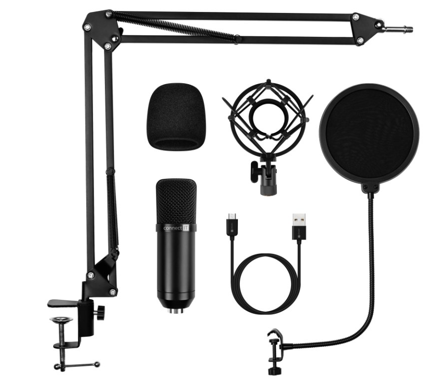 Connect IT ProMic USB mikrofón so stolným ramenom – čierna
