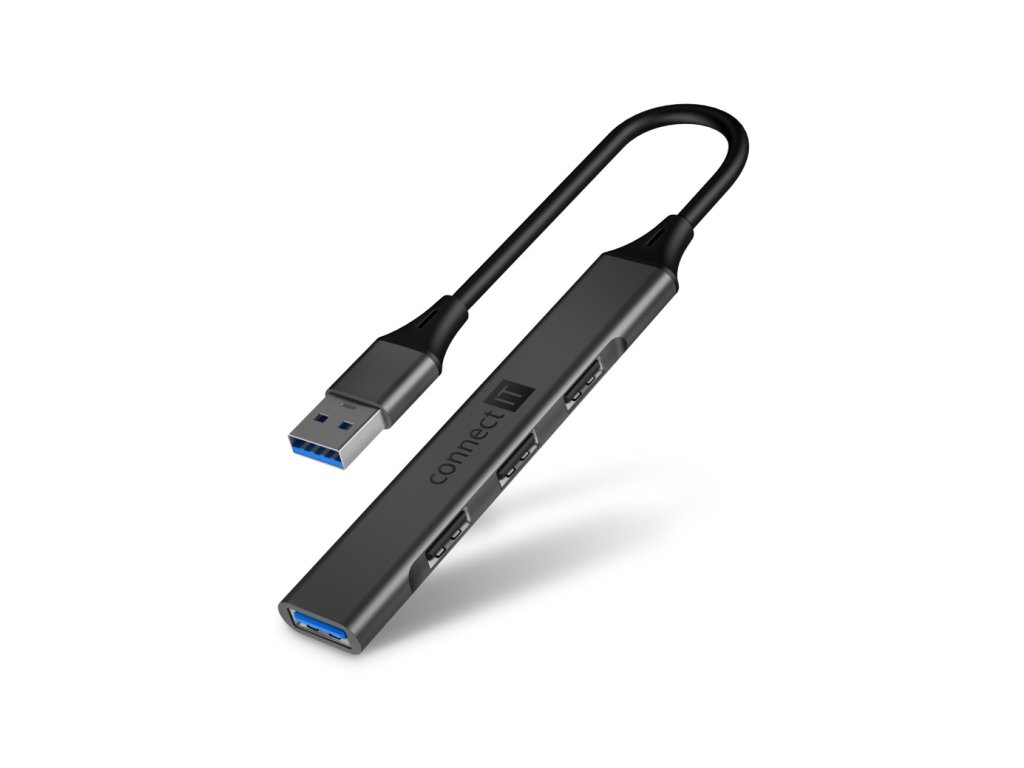 Connect IT USB-A hub (1x USB-A 3.0, 3x USB-A 2.0), externý - antracitová