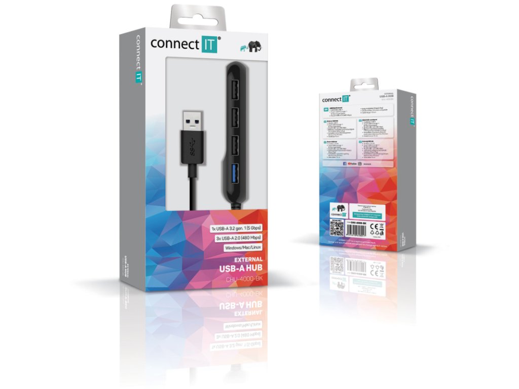 Univerzálny rozbočovač na efektívne pripojenie až štyroch USB zariadení. Connect IT Quattro Premium ponúka štyri USB porty (1× USB 3.0 a 3× USB 2.0) v kompaktnom tele s jednoduchým pripojením cez USB-A. Ideálne na rozšírenie konektivity vášho notebooku alebo stolného PC.