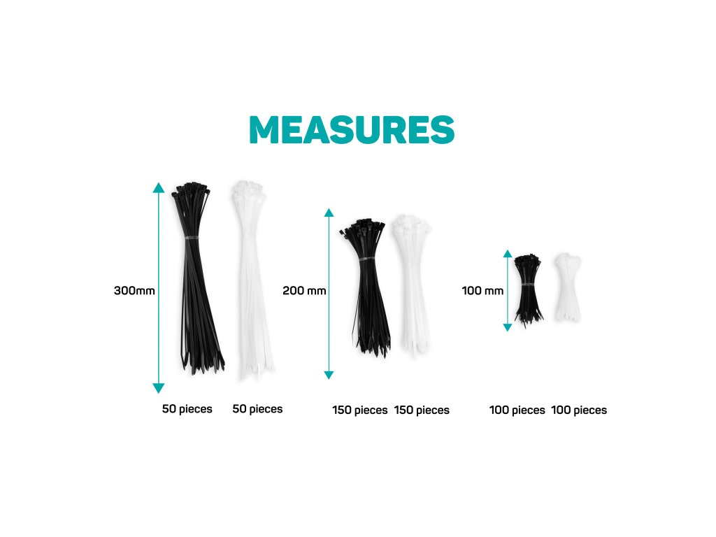 Súprava obsahuje tri rôzne dĺžky, ktoré pokryjú široké spektrum potrieb – od krátkych zväzkov až po väčšie káblové inštalácie. Pásky vytvárajú veľmi pevný a stabilný spoj a manipulácia s nimi je rýchla a intuitívna.