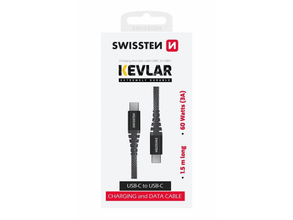 SWISSTEN dátový kábel KEVLAR, USB-C/USB-C, 1,5 m, antracit