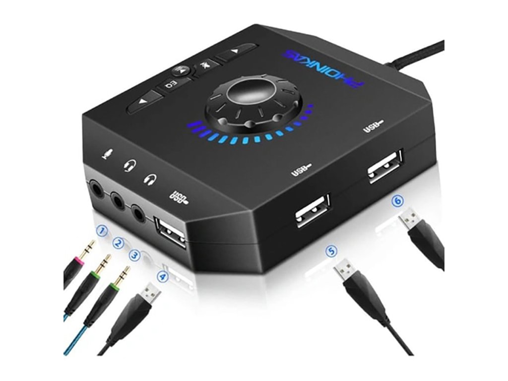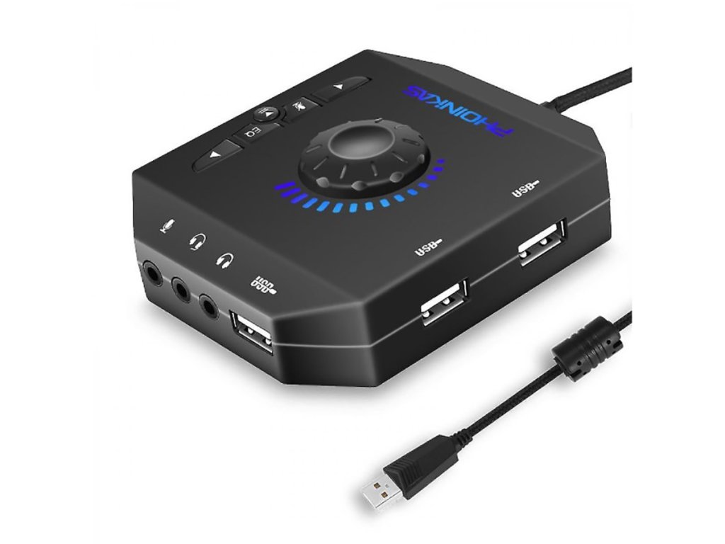 Externá zvuková karta Phoinikas T-10 poskytuje 360 ° stereofónny zvukový priestor, ktorý minimalizuje elektromagnetické rušenie a zaručuje stabilný a kvalitný zvuk. Je ideálny na použitie vo VoIP aplikáciách, ako je Skype, ICQ, Google Hangouts a Team Speak. Táto karta je tiež vhodná na simultánne ovládanie dvoch zdrojov zvuku - reproduktorov a slúchadiel.
