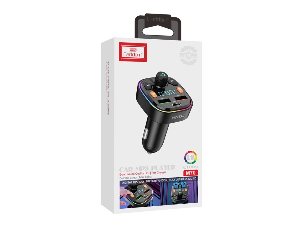 Bezdrôtová hudba a rýchle nabíjanie v jednom kompaktnom zariadení. Earldom ET-M70 umožňuje prehrávanie hudby cez Bluetooth 5.0 aj priamo z USB flash disk. Jednoducho nastavíte frekvenciu a behom pár sekúnd počúvate obľúbené skladby cez autorádio.