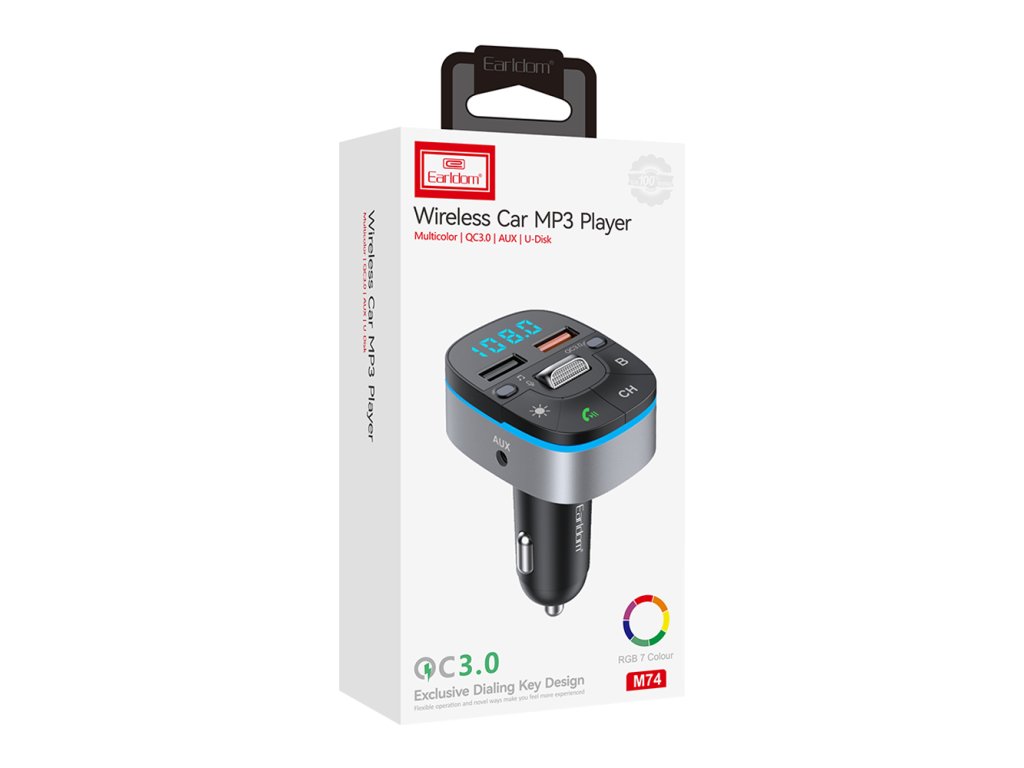 FM transmitter Earldom ET-M74, Bluetooth, USB, Micro SD, QC 3.0