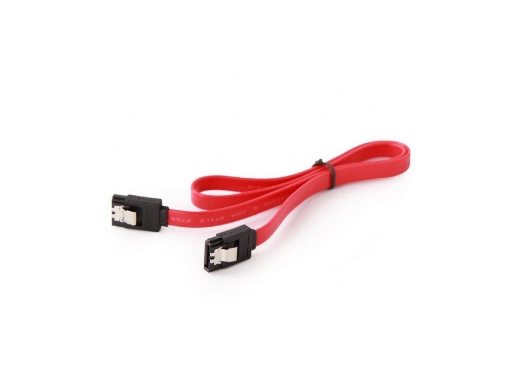 Väčšina základných dosiek s týmto rozhraním je najmenej jedným dátovým káblom vybavená. Na pripojenie ďalšieho disku či mechaniky je však nutné kábel dokúpiť. Tento Serial ATA kábel disponuje dostatočnou dĺžkou 50cm a ponúka kovové západky na zaistenie kábla proti vypadnutiu.