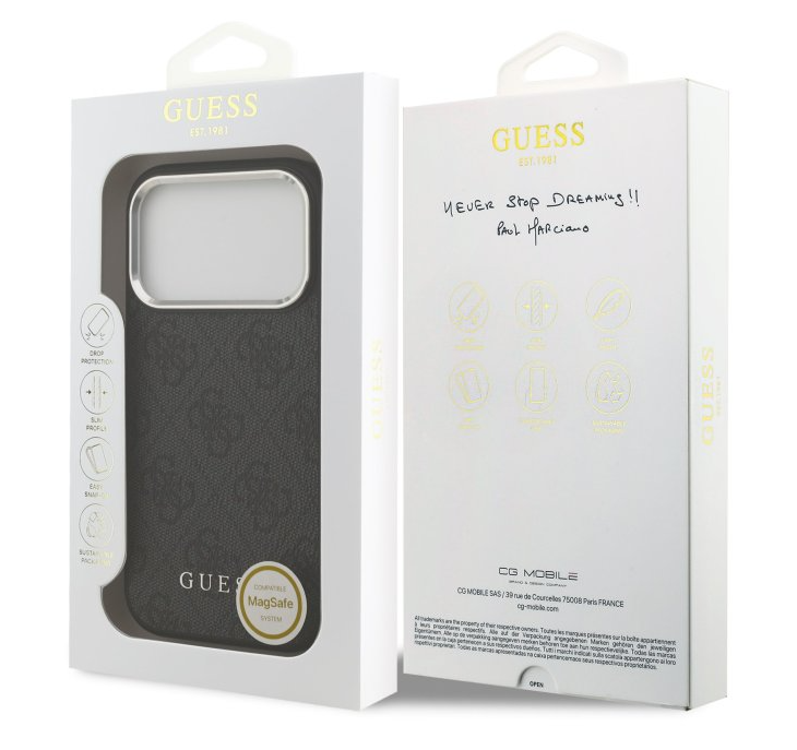 Guess 4G MagSafe zadný kryt je štýlový doplnok, ktorý spája elegantný dizajn značky Guess s každodennou funkčnosťou. Typický 4G potlač doplnená logom Guess dodáva krytu luxusný vzhľad a robí z neho nielen ochranu telefónu, ale aj módny prvok.