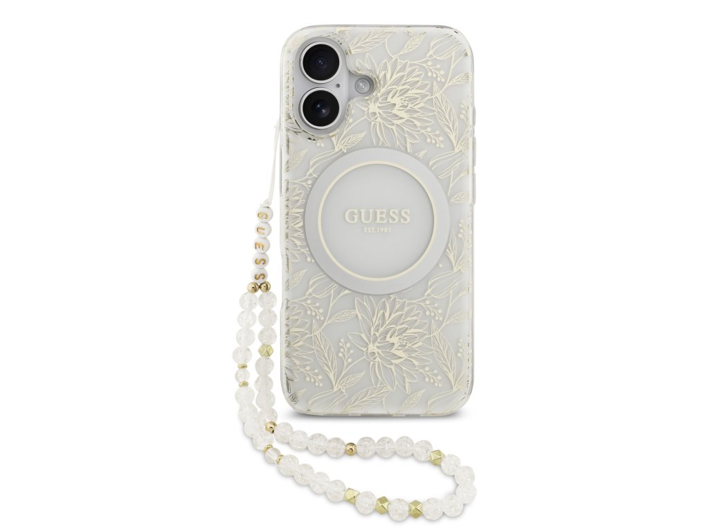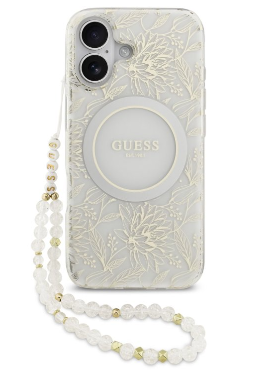 Elegantný MagSafe kryt Guess s kvetinovým dizajnom a pútkom, ktorý ochráni váš iPhone 17 a zároveň z neho urobí štýlový módny doplnok.