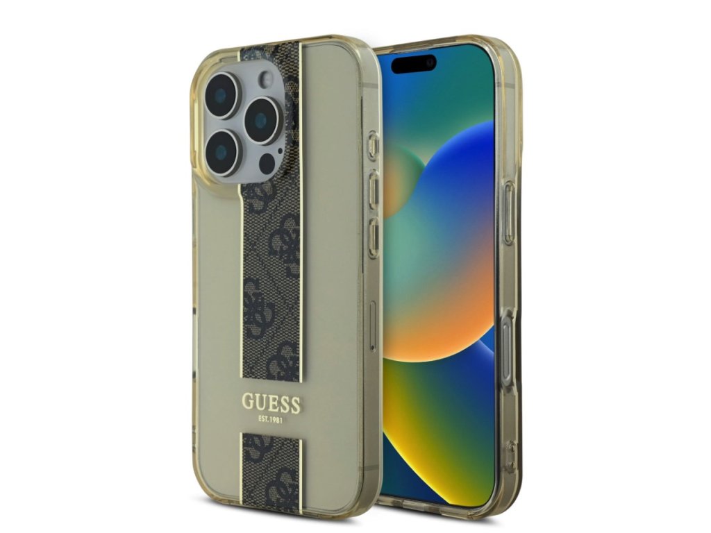 Guess IML Middle 4G Stripe Zadný Kryt pre iPhone 16 Pro Brown