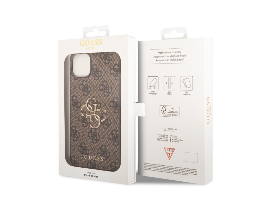 Guess PU 4G Metal Logo Zadný Kryt pre iPhone 14 Plus Brown