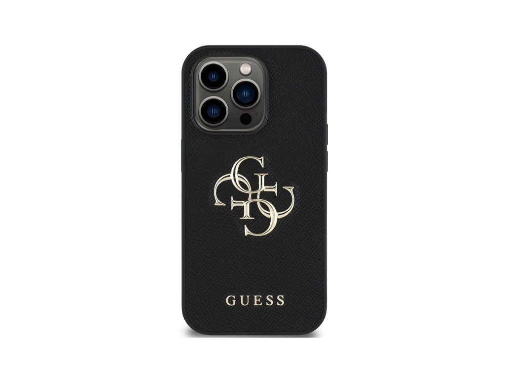 Guess PU 4G Metal Logo Zadný Kryt pre iPhone 14 Pre Čierna