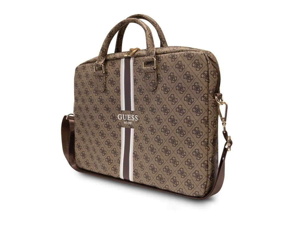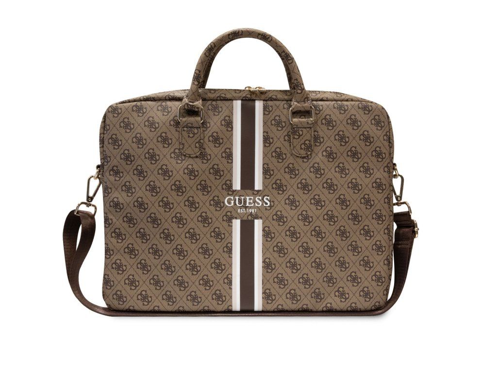 Guess PU 4G Printed Stripes Computer Bag 15/16" Brown