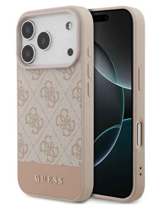 Guess PU 4G Stripe Zadný Kryt pre iPhone 17 Pro – ružová