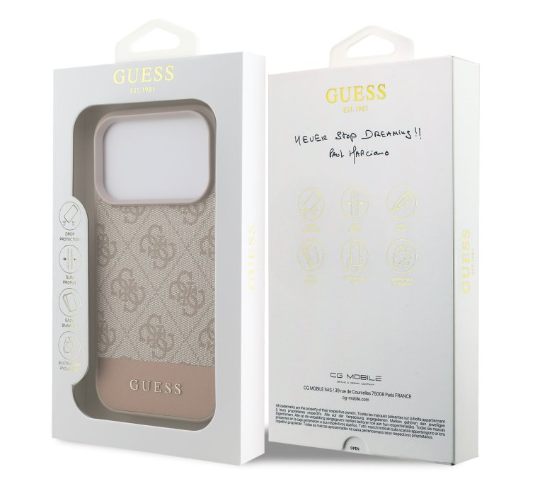 Guess PU 4G Stripe zadný kryt je elegantným spojením módneho designu a praktickej ochrany telefónu. Typický 4G vzor doplnený štýlovým pruhom a kovovým logom Guess dodáva krytu luxusný vzhľad, ktorý perfektne ladí s každodenným aj formálnejším outfitom.