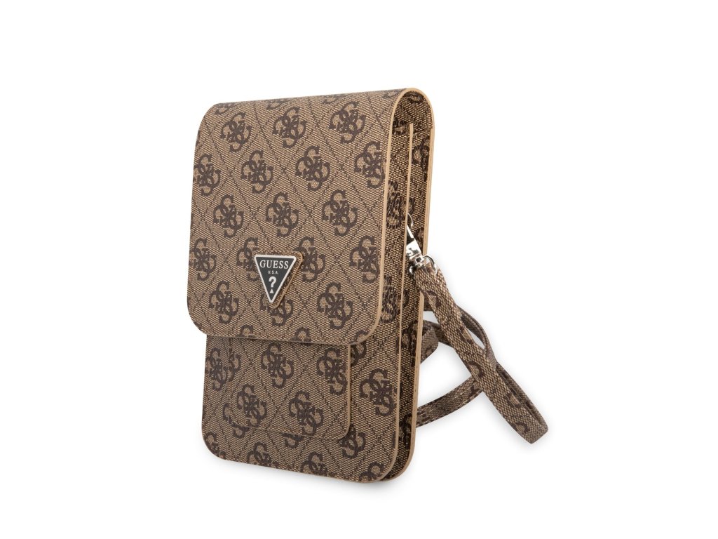 Guess PU 4G Triangle Logo Phone Bag Brown