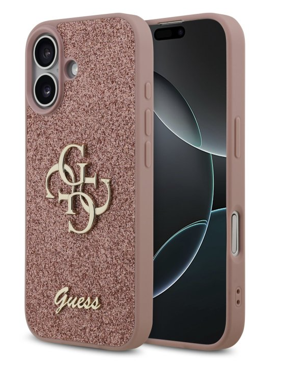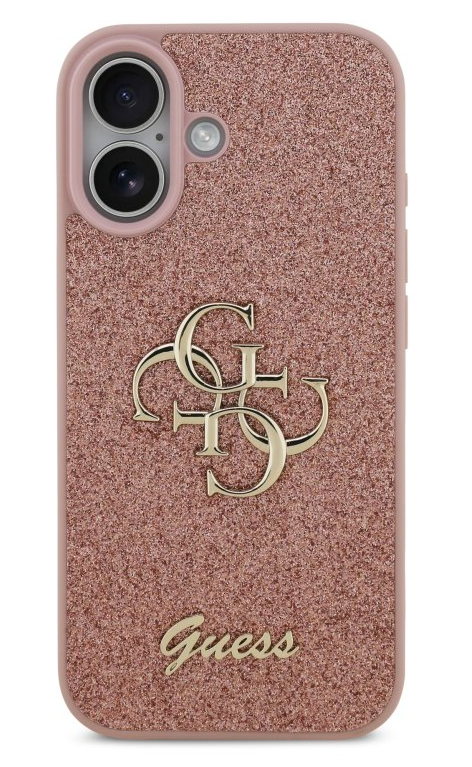 Guess PU Fixed Glitter 4G Metal Logo Zadný Kryt pre iPhone 17 – ružová
