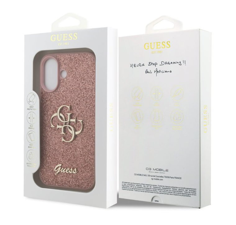 Dominantným prvkom krytu je kovové logo Guess „4G“, ktoré spolu s trblietavým povrchom vytvára luxusný a štýlový celok. Tento kryt nie je iba ochranou telefónu, ale aj výrazný módny doplnok, ktorý podčiarkne váš osobný štýl a dodá vášmu zariadeniu prémiový vzhľad.