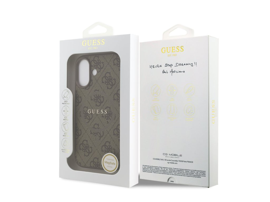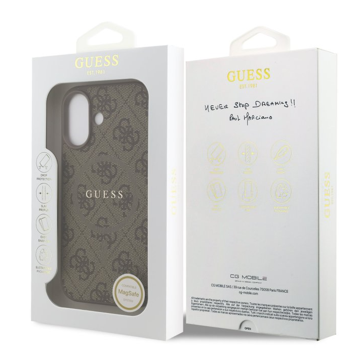 Elegantná 4G potlač v kombinácii s kovové logo Guess a farebným MagSafe krúžkom vytvára design, ktorý pôsobí moderne, luxusne a zároveň štýlovo. Tento kryt nie je iba ochranným prvkom, ale aj módnym doplnkom, ktorý skvele doplní váš telefón aj celý outfit.