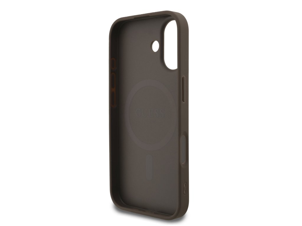 Guess PU Leather 4G Colored Ring MagSafe Zadný Kryt pre iPhone 17 – hnedá
