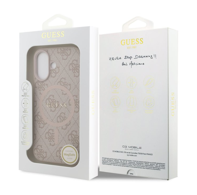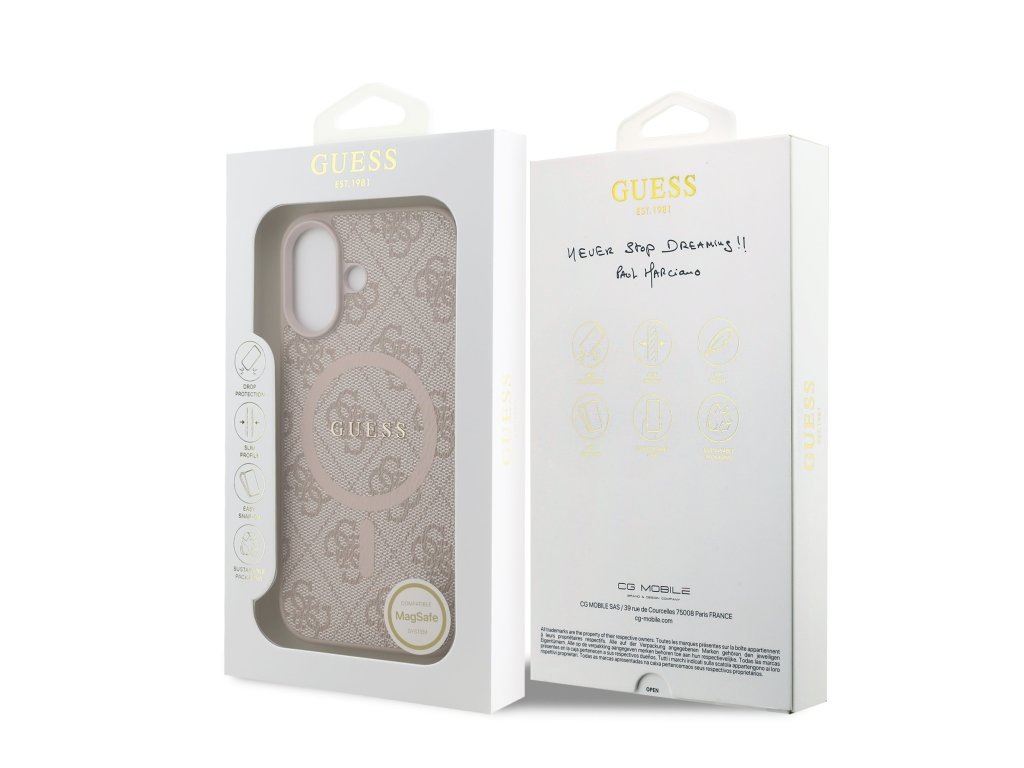 Elegantná 4G potlač v kombinácii s kovové logo Guess a farebným MagSafe krúžkom vytvára design, ktorý pôsobí moderne, luxusne a zároveň štýlovo. Tento kryt nie je iba ochranným prvkom, ale aj módnym doplnkom, ktorý skvele doplní váš telefón aj celý outfit.