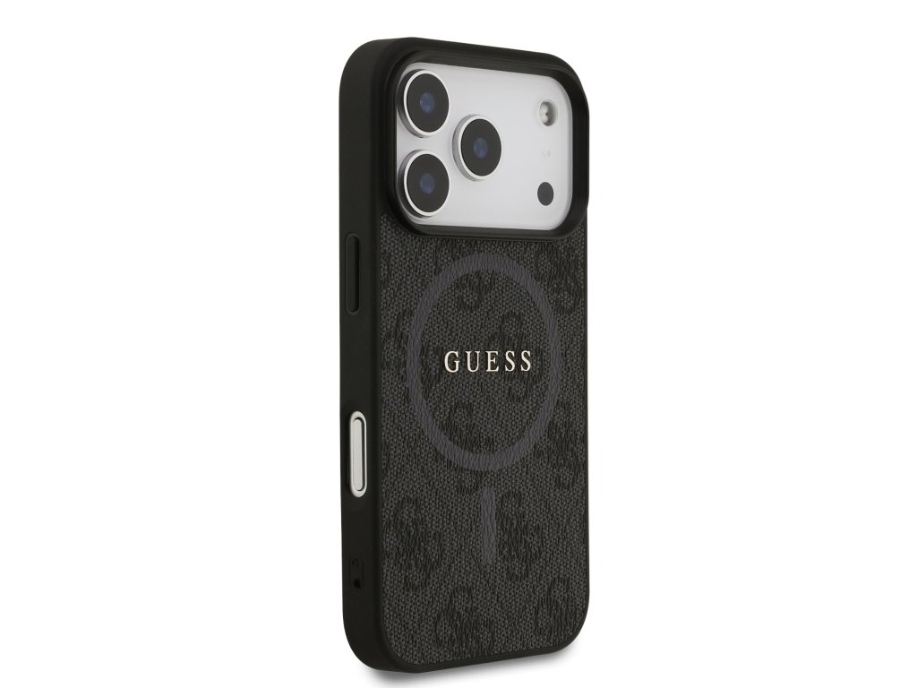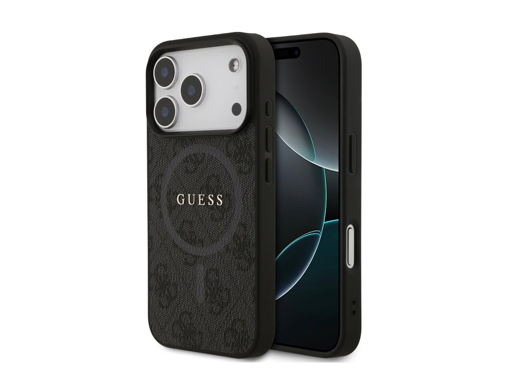 Guess PU Leather 4G Colored Ring MagSafe Zadný Kryt pre iPhone 17 Pro – čierna