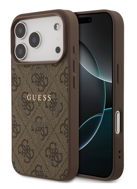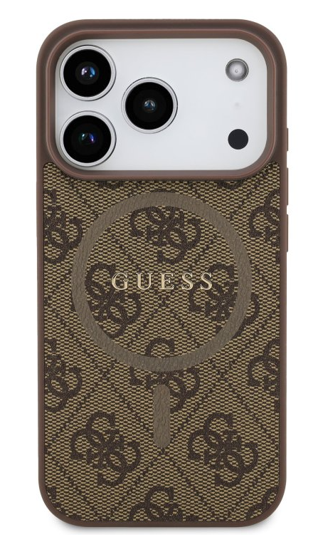Guess PU Leather 4G Colored Ring MagSafe Zadný Kryt pre iPhone 17 Pro – hnedá