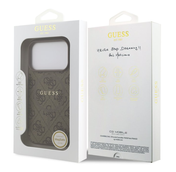 Elegantná 4G potlač v kombinácii s kovové logo Guess a farebným MagSafe krúžkom vytvára design, ktorý pôsobí moderne, luxusne a zároveň štýlovo. Tento kryt nie je iba ochranným prvkom, ale aj módnym doplnkom, ktorý skvele doplní váš telefón aj celý outfit.
