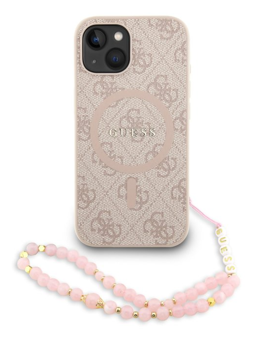 Guess PU Leather 4G Colored Ring Strap MagSafe Zadný Kryt pre iPhone 14 – ružová