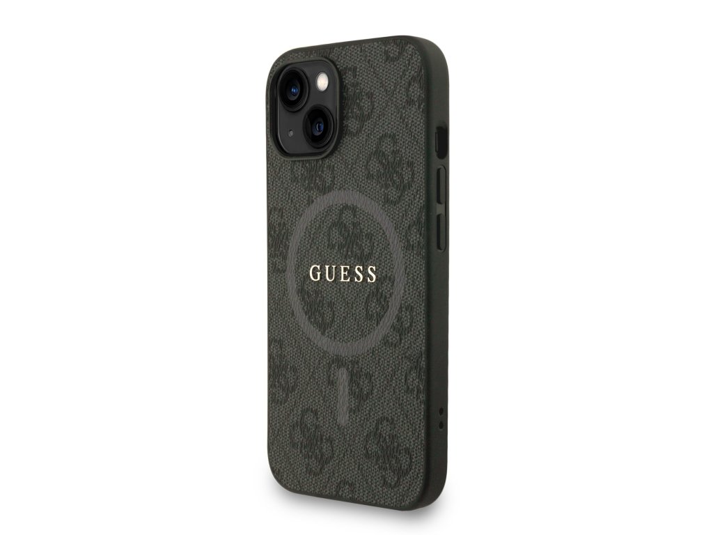 Guess PU Leather 4G Colored Ring Strap MagSafe Zadný Kryt pre iPhone 15 – čierna