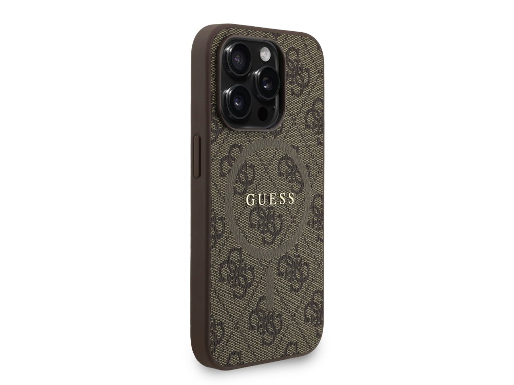Guess PU Leather 4G Colored Ring Strap MagSafe Zadný Kryt pre iPhone 15 Pro – hnedá