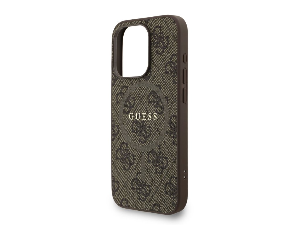 Guess PU Leather 4G Colored Ring Strap MagSafe zadný kryt je štýlový prémiový doplnok, ktorý dokonale spája elegantný módny dizajn, praktickú ochranu a moderné technológie. Charakteristický 4G vzor značky Guess je doplnený o kovové logo a farebný MagSafe krúžok, ktorý dodáva krytu výrazný a luxusný vzhľad.