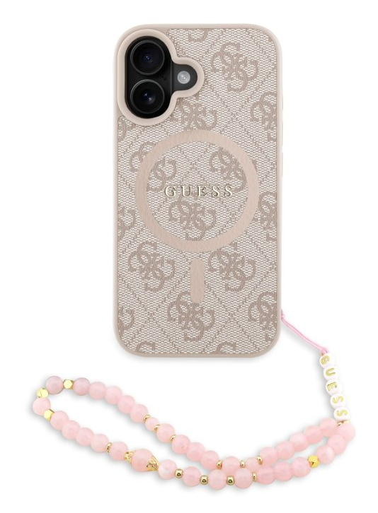 Guess PU Leather 4G Colored Ring Strap MagSafe Zadný Kryt pre iPhone 16 – ružová
