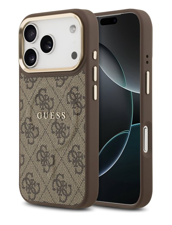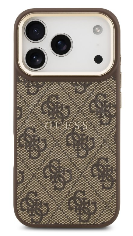Guess PU Leather 4G Gold Frame MagSafe Zadný Kryt pre iPhone 17 Pro – hnedá