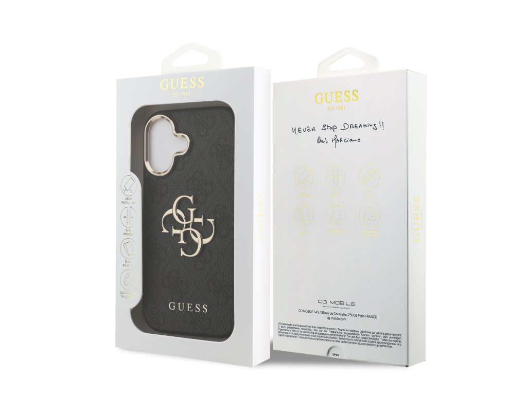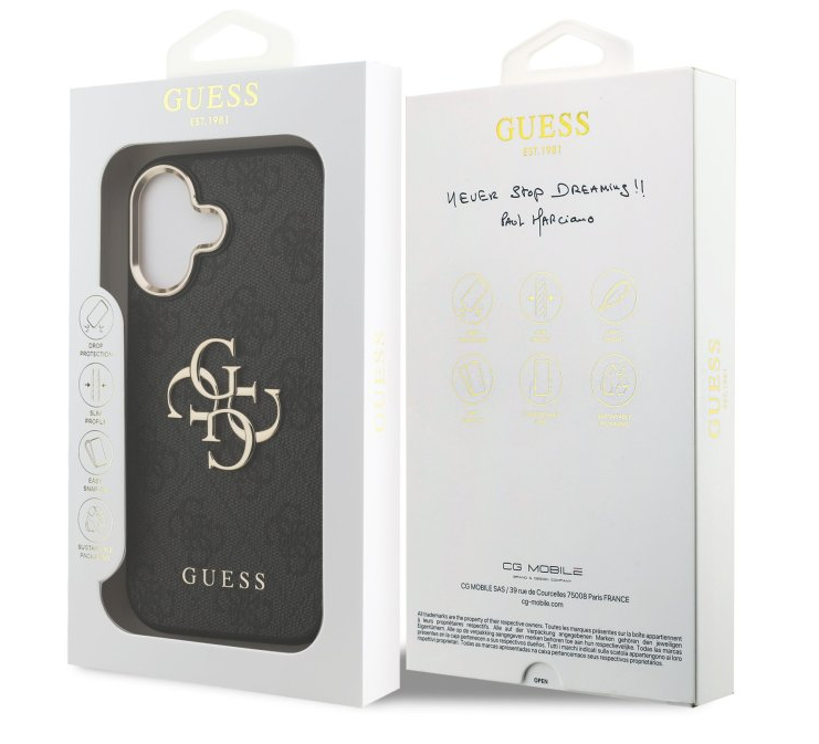 Zadnú stranu zdobí výrazné kovové logo 4G Guess, ktoré podčiarkuje exkluzívny charakter krytu. Celkový vzhľad je navyše doplnený o zlato ladený rámček zadného fotoaparátu, Ktorý dodáva krytu prémiový a elegantný nádych. Tento detail ocení každý, kto si potrpí na štýl a precízne spracovanie.
