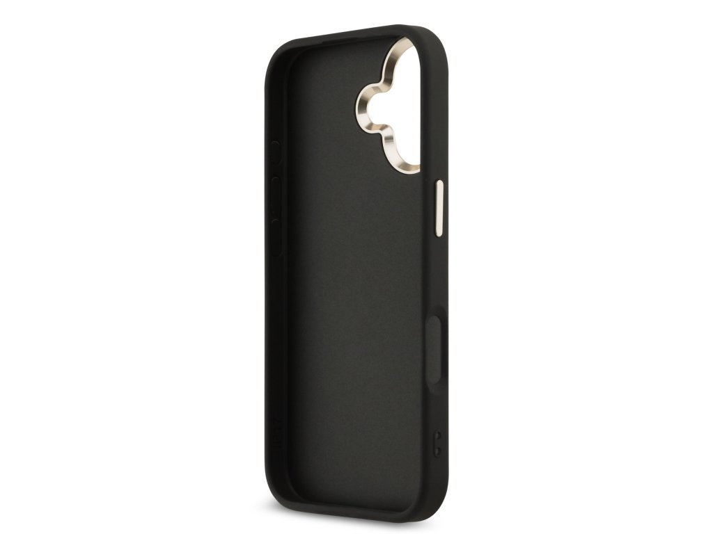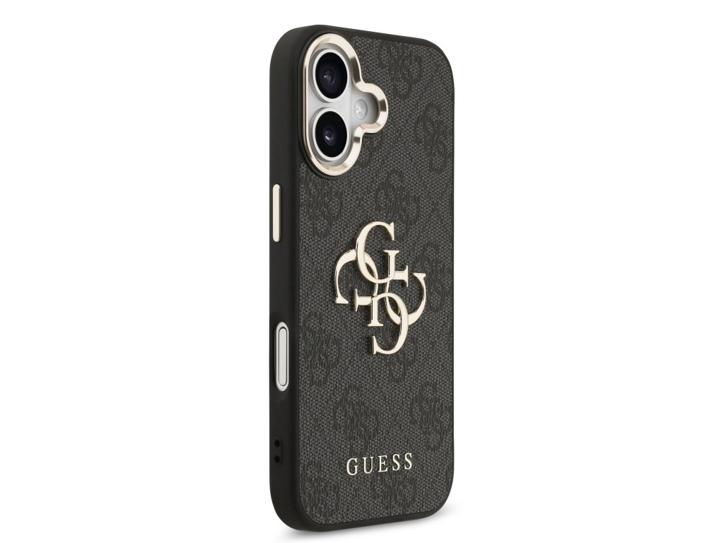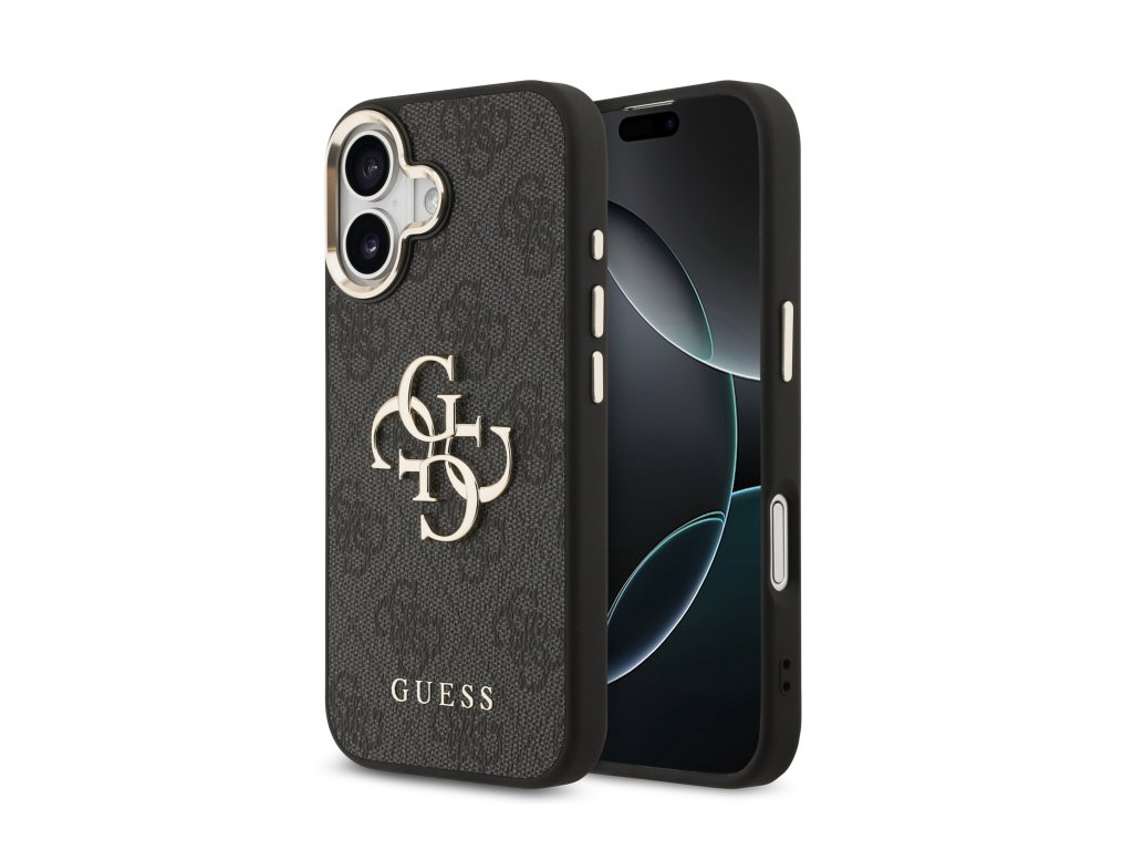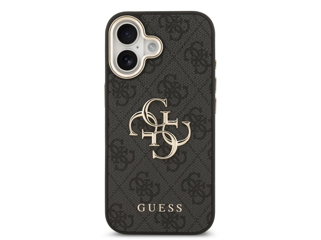 Guess PU Leather 4G Metal Logo Gold Frame Zadný Kryt pre iPhone 17 – čierna