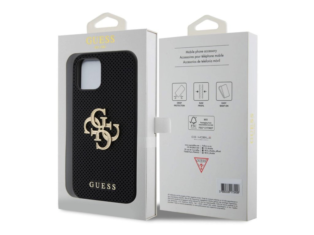 Na zadnej strane krytu nájdete jemnú perforáciu, ktorá mu dodáva jedinečný vzhľad. Zdobí ho kovové 4G logo s nápisom Guess, čo je dokonalý detail na dokončenie celkového štýlu.