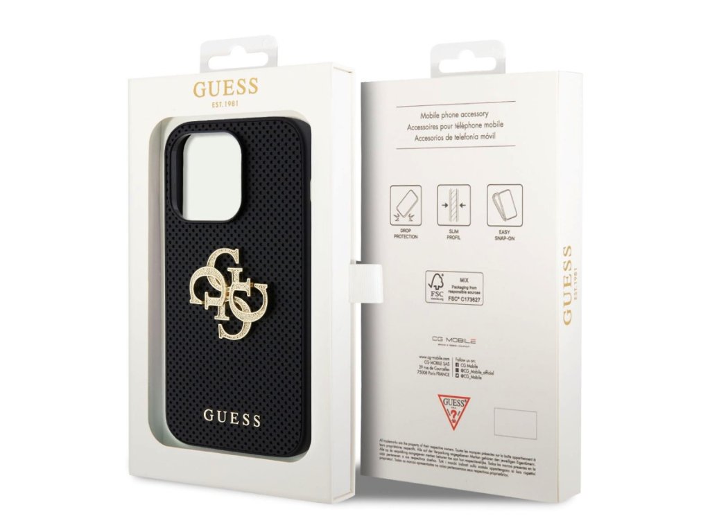 Na zadnej strane krytu nájdete jemnú perforáciu, ktorá mu dodáva jedinečný vzhľad. Zdobí ho kovové 4G logo s nápisom Guess, čo je dokonalý detail na dokončenie celkového štýlu.