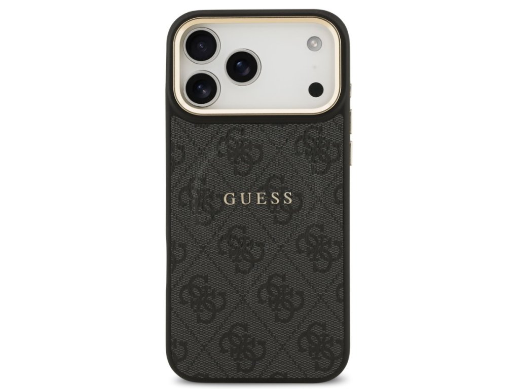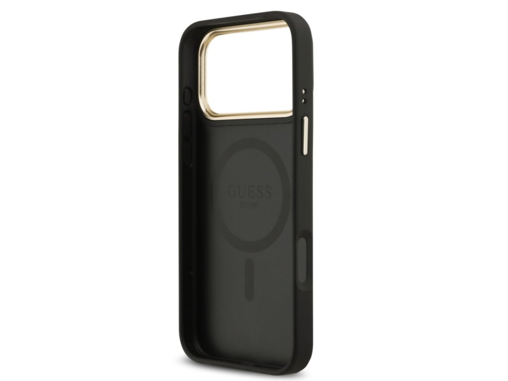 Guess zadný kryt pre iPhone 17 Pro Max, PU Koža 4G Gold Frame MagSafe - čierna