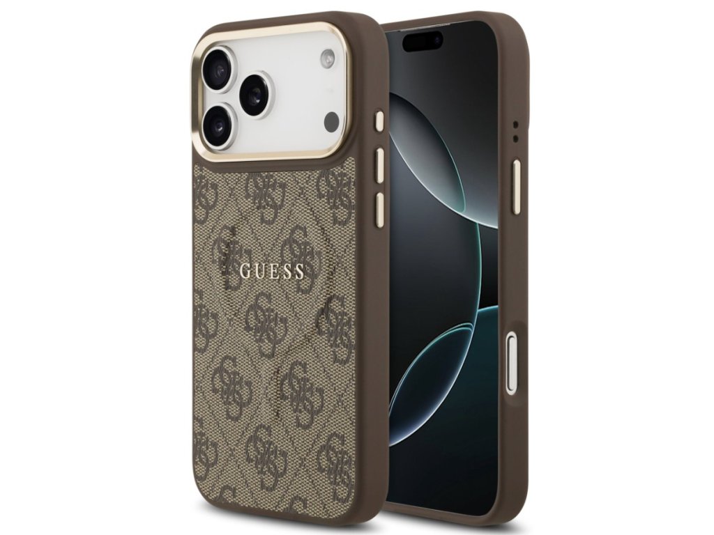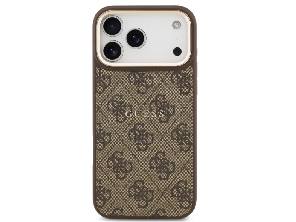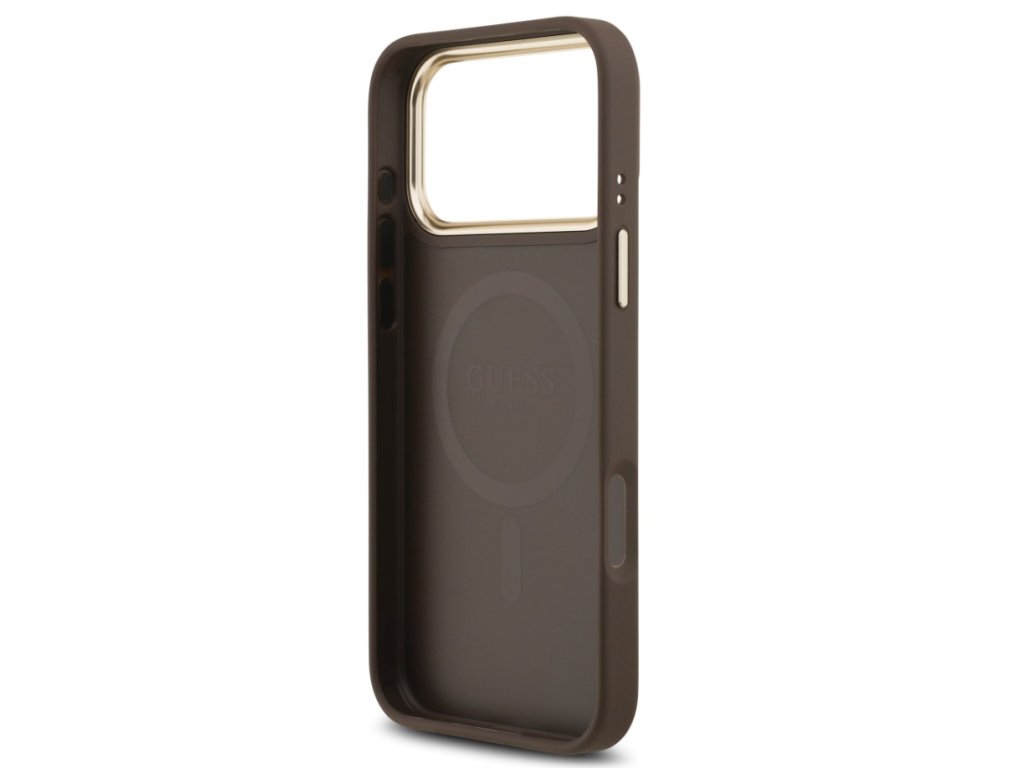 Guess zadný kryt pre iPhone 17 Pro Max, PU Koža 4G Gold Frame MagSafe - hnedá