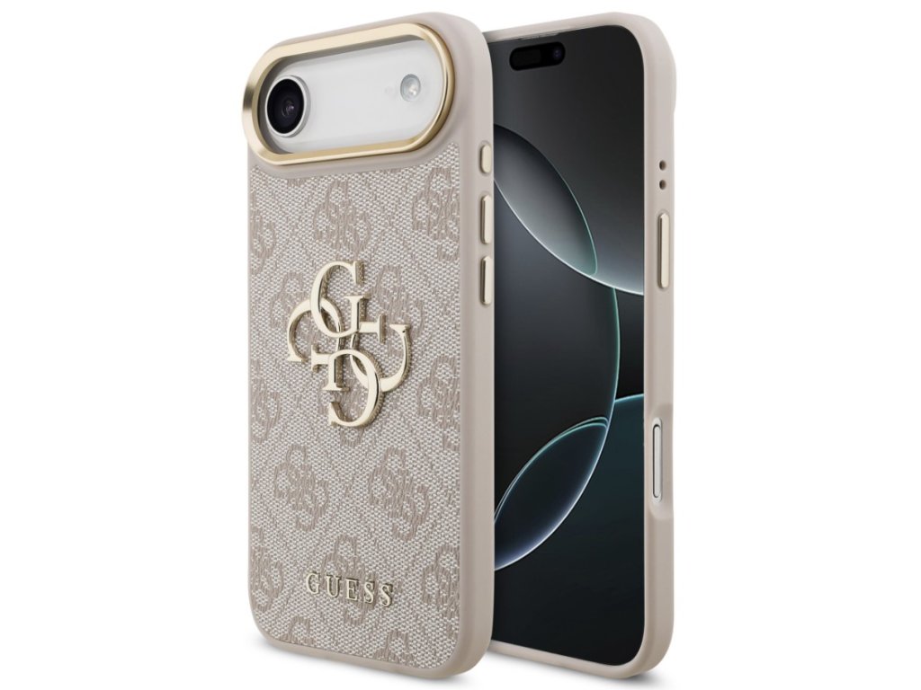 Guess zadný kryt pre iPhone Air, PU Koža 4G Metal Logo Gold Frame - ružová