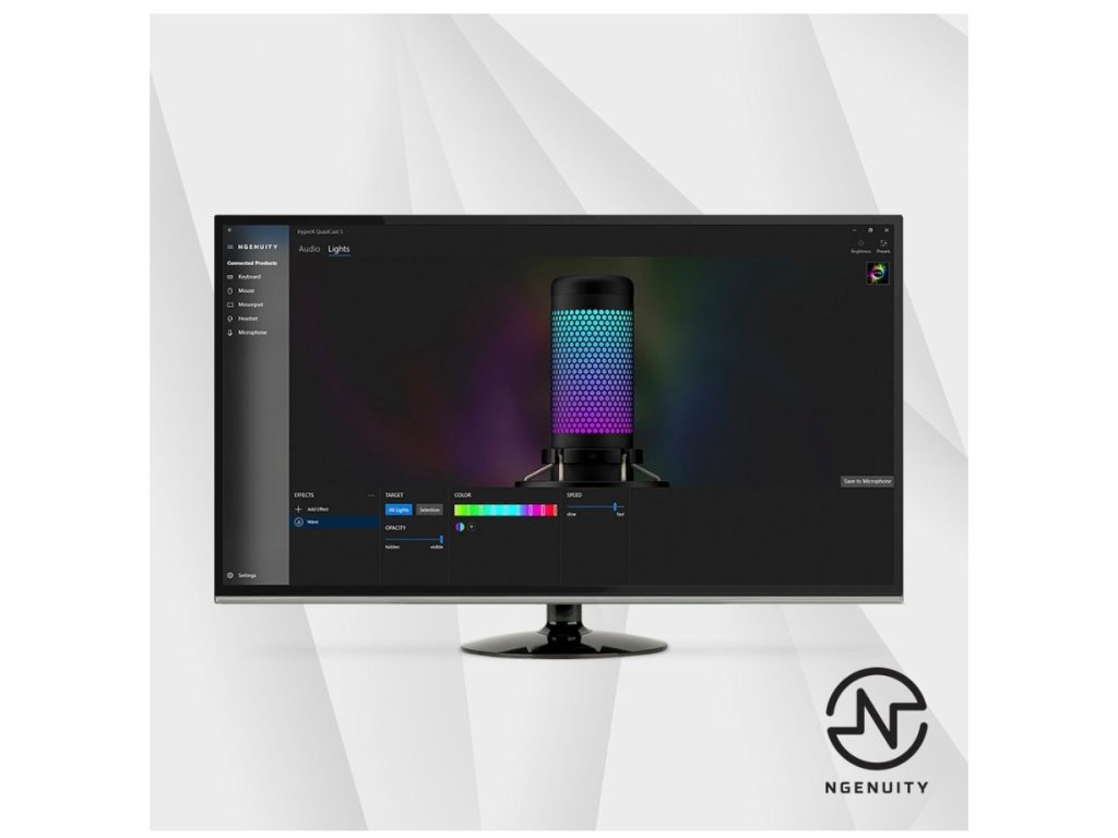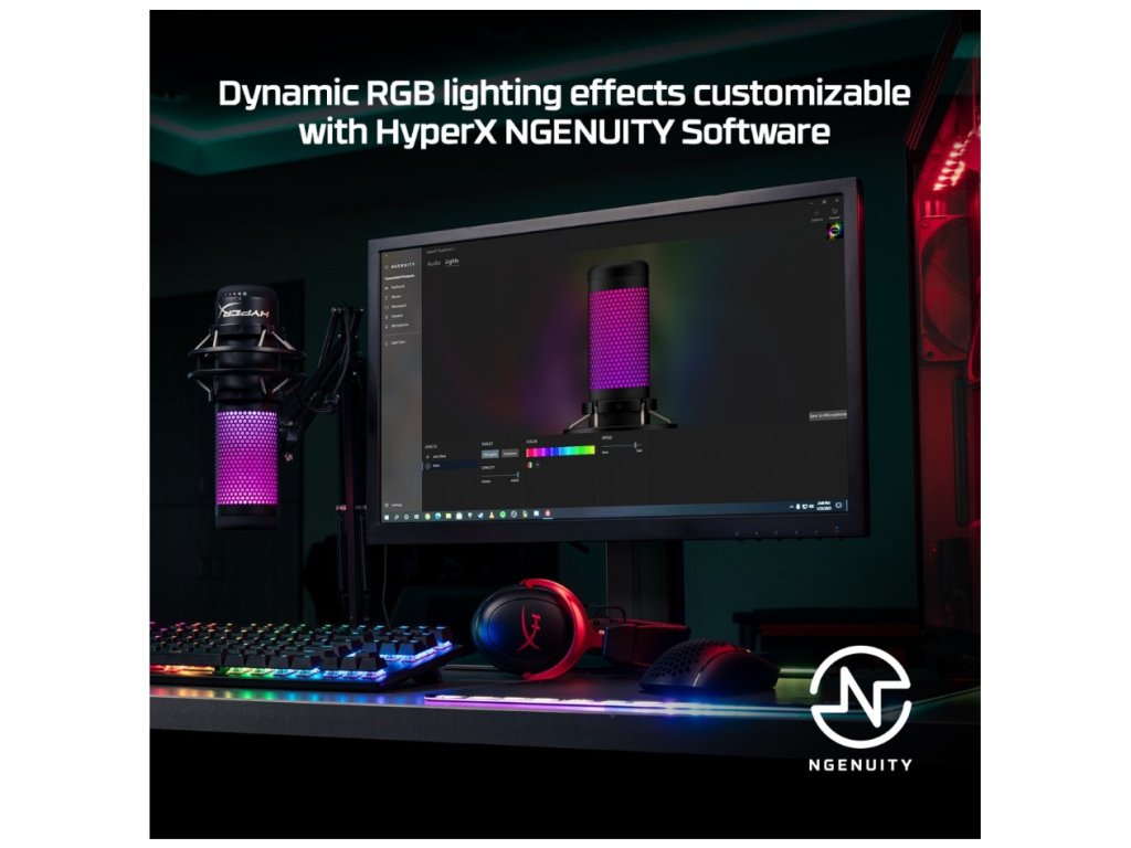 Verzia QuadCast S sa odlišuje od základného modelu predovšetkým pokročilým RGB podsvietením. Mikrofón ponúka dvojzónové RGB efekty, ktoré je možné prispôsobiť pomocou softvéru HyperX NGENUITY. Vďaka tomu je možné vytvoriť výrazný vizuálny prvok, ktorý skvele vynikne pri streamovaní alebo tvorbe videí. RGB osvetlenie je možné nastaviť podľa vlastného štýlu alebo zladiť s ostatným herným príslušenstvom.