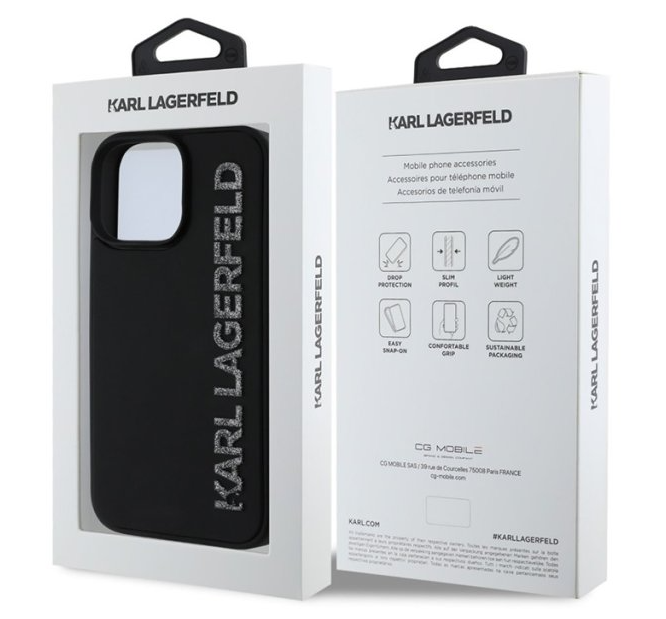 Chráňte svoj iPhone vo veľkom štýle s krytom Karl Lagerfeld 3D Rubber Glitter Logo.